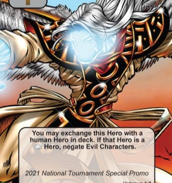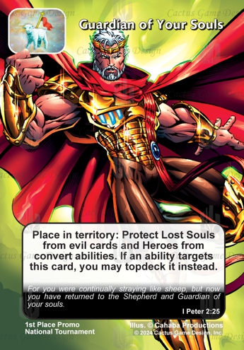 Redemption CCG Promotional Cards are cards that don't come in packs. Typically they are given out for participating in tournaments as well as winning tournaments. The 10 original promos were gained by other means, the easiest by buying a factory set from Cactus Game Design which are now sold out. Now each year each level of tournament has it's own promo as well as seasonal promos.