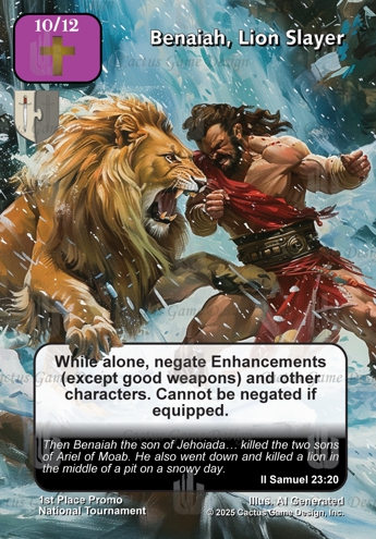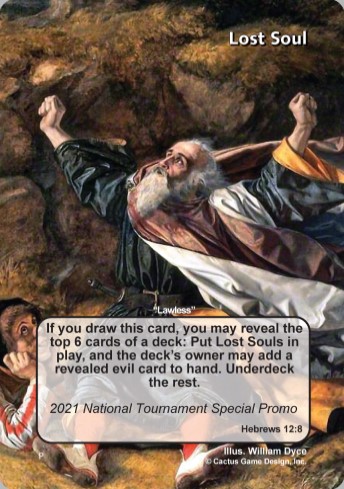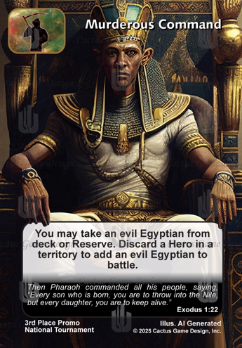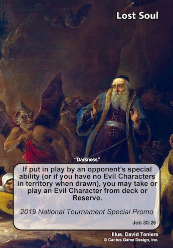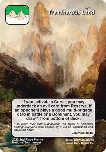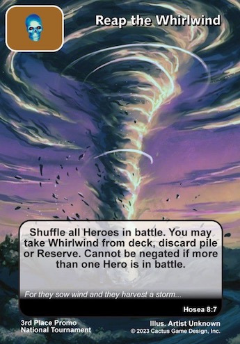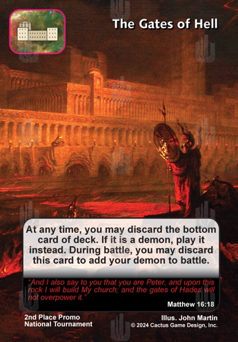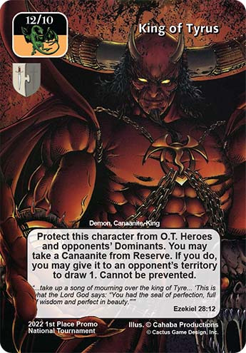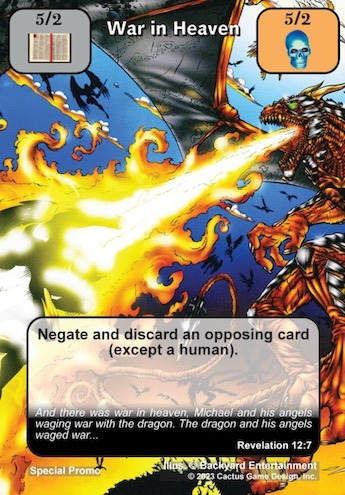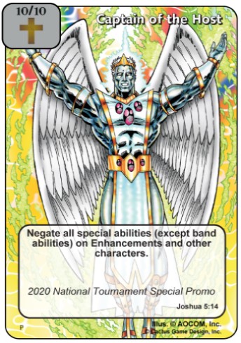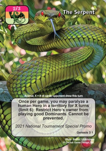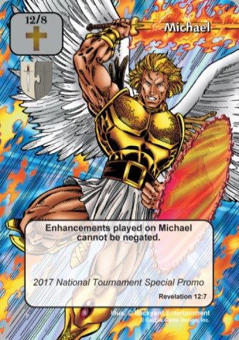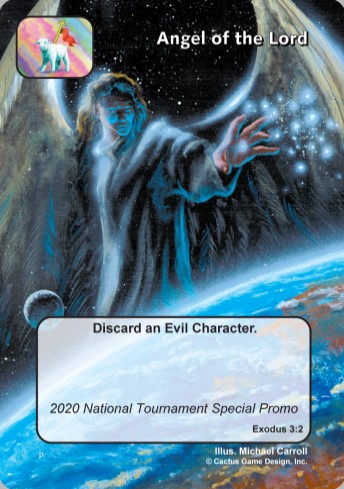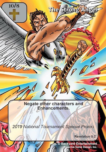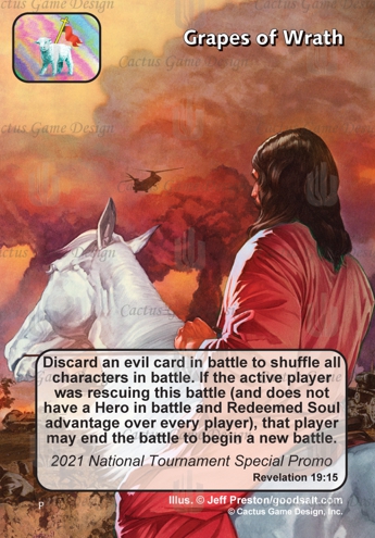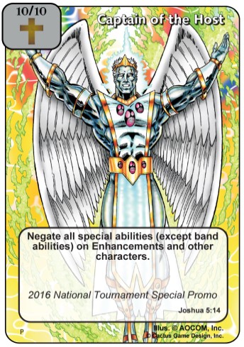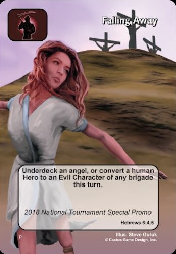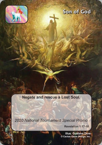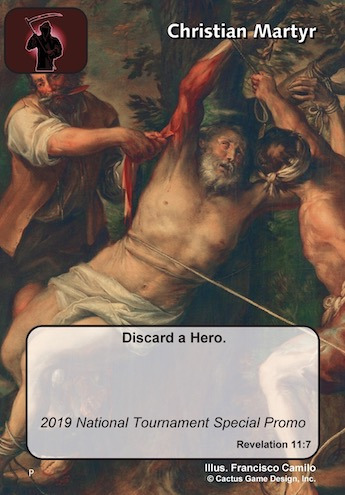 Redemption CCG Promotional Cards are cards that don't come in packs. Typically they are given out for participating in tournaments as well as winning tournaments. The 10 original promos were gained by other means, the easiest by buying a factory set from Cactus Game Design which are now sold out. Now each year each level of tournament has it's own promo as well as seasonal promos.