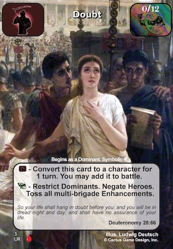 Each card box contains five (5) Prophecy of Christ and ten (10) cards from the Women, Rock of Ages, Faith of our Fathers, Unlimited, and Thesaurus ex Preteritus. This is set to change as they run low on Rock of Ages cards. The approximate card mix is as follows: