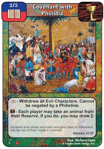 Mainly used as an artifact. Being able to grab an animal from reserve while having Book of Covenant up is amazing. If you play the original Storehouse you can get Scapegoat and continuously put it back at end of turn to make you draw 2 extra every time.