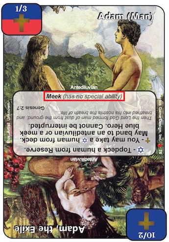 Meek is a new term used for a character without a special ability. Although having no special ability isn't new, the term Meek and how it is used is and has unique interactions with certain cards.